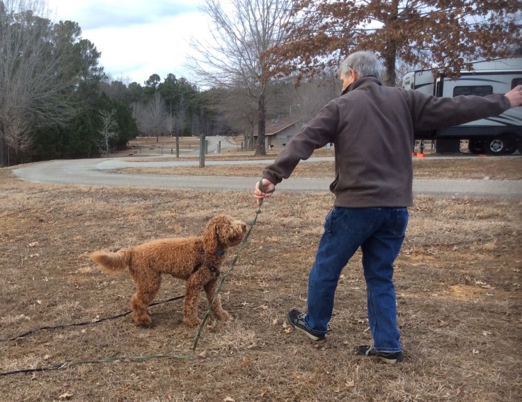 I ran into the camper, grabbed my scissors, and happily started cutting away. After I few moments I looked down. The ground was covered in hair…I was covered in hair. My only coat was covered in hair! The ground I could sweep….possibly. My only coat…impossible. Is there such a thing as Groomer’s Anonymous?