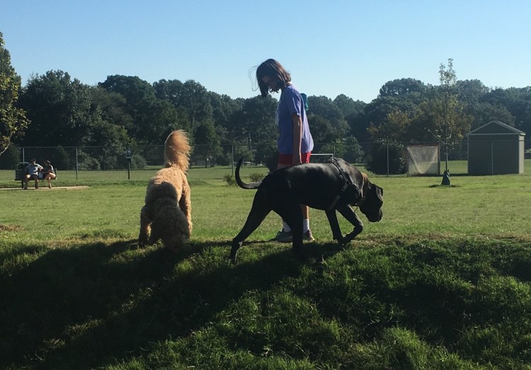 This morning, Lucy, I, and four of the grandkids, loaded into the car, for an adventure to our new neighborhood dog park.