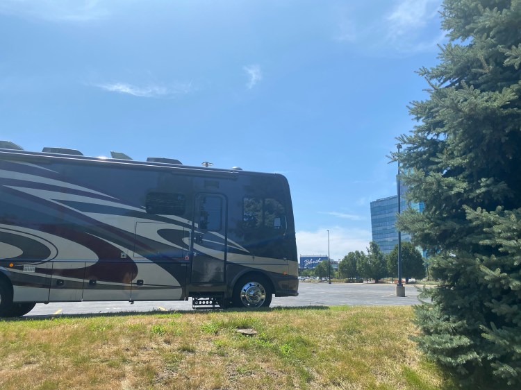 Some may wonder, is it safe to boondock in a parking lot? In the past, I have wondered exactly how secure is my RV? I have wondered if I left it, could someone break in? I have pondered these thoughts a lot until…we accidentally locked ourselves out of the RV. This event happened about two months ago. We had stepped out of the RV to take the dog for a walk. When we tried to reenter the RV, the door was locked up tight! At first, my husband, Joe, tried to pop the hinges off the door. While he was engaged in the futile attempt to remove door hinges, I walked the perimeter of the camper, looking to see if we could enter through one of the windows. I discovered that the only way to access the windows would be to stand on something tall like a ladder or to be very tall. Like the Jolly Green Giant! For most of our windows, one would need to also be very skinny. Like skeleton skinny! (So, I am now pretty confident that no one is going to break in through a window. Well, that is, unless that person is a very anorectic giant!) After about fifteen minutes of standing out in the 90-degree heat trying to break into our own camper, we gave up and called a locksmith! It took 45 minutes for the locksmith to arrive.
