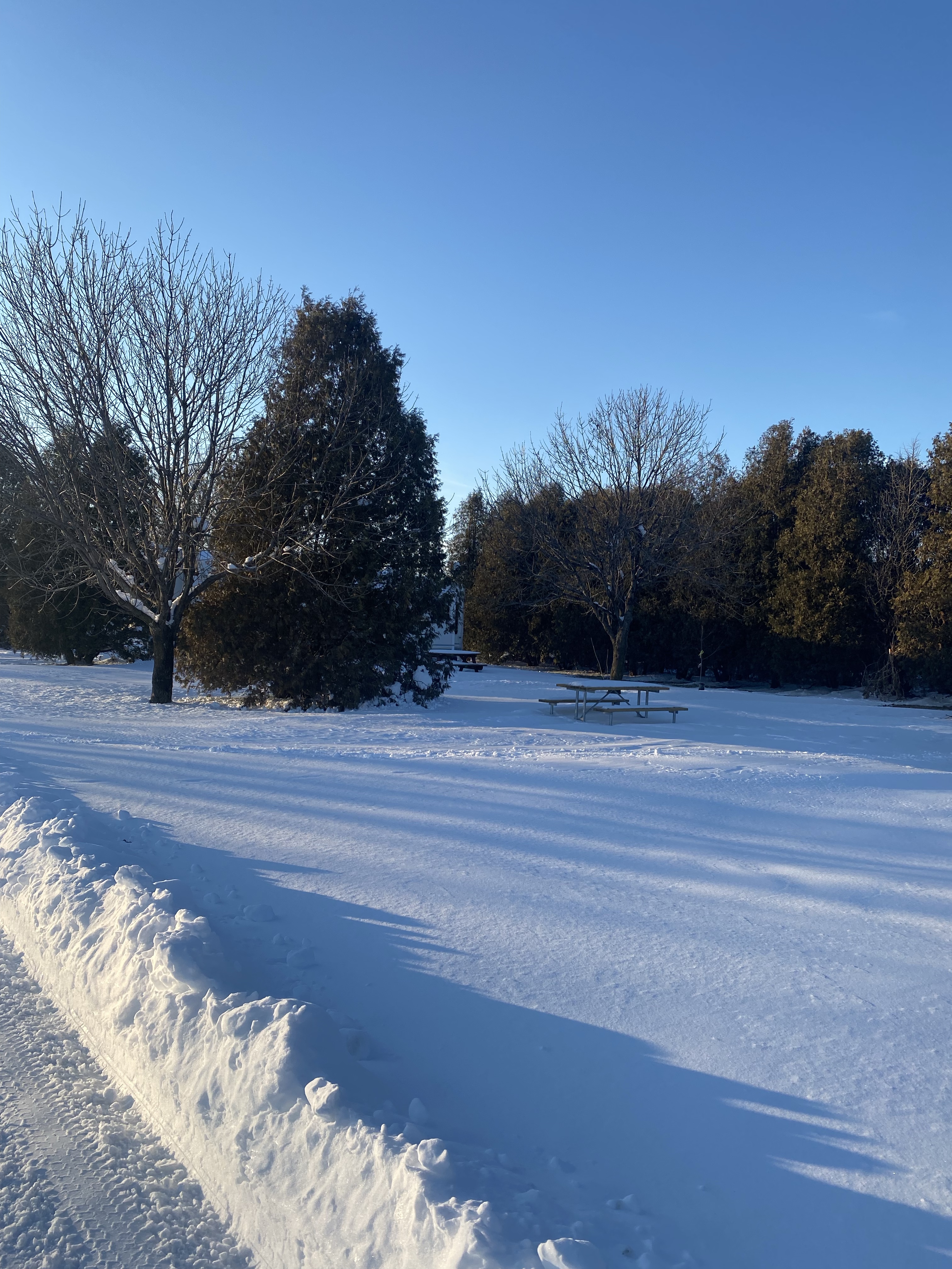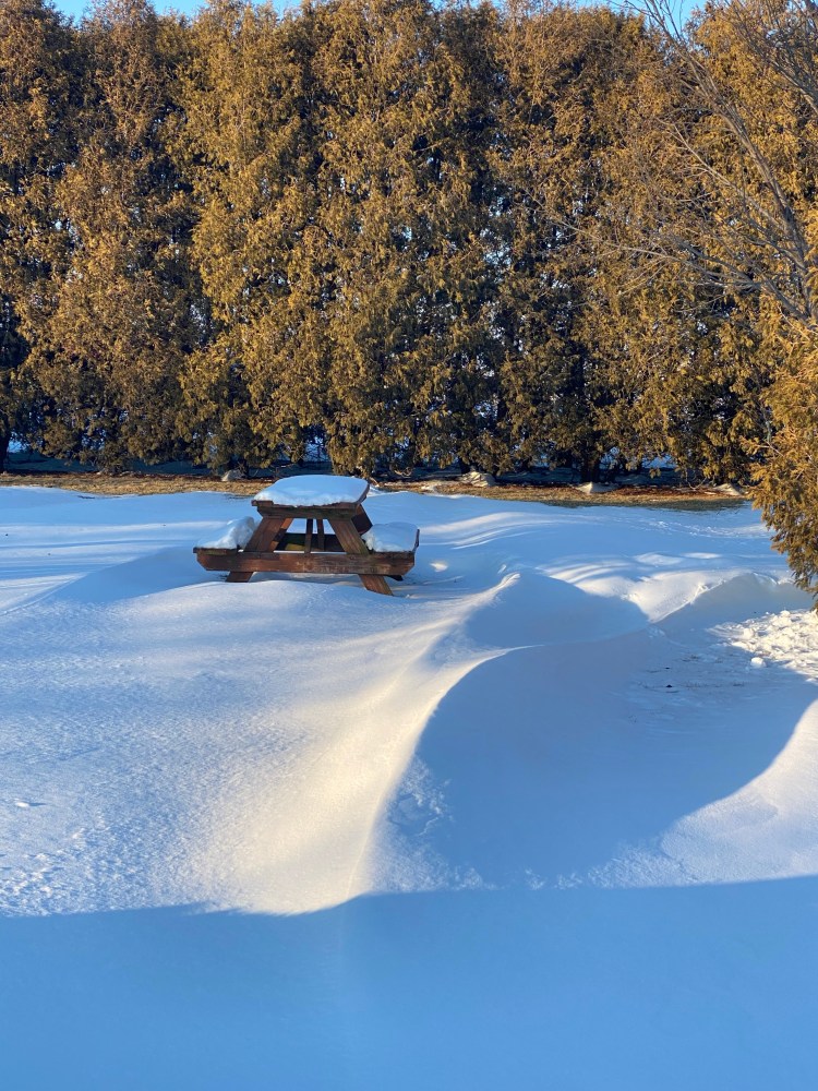 Also, The snow is heavy to walk through, and where it has been shoveled, it feels like walking through a sea of baking soda as it squeaks under my feet.