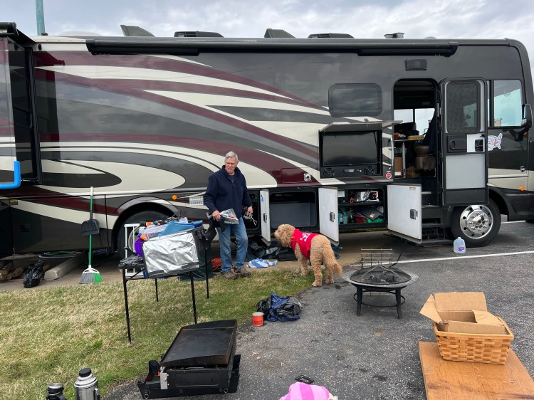 Last week, we decided to clean out and organize all of our under-coach storage bays. We diligently and systematically emptied out our coach bays with the finesse and grace of a drunken sailor, giving our lawn area the appearance of a chaotic mess! Bay after bay, yielded turd after turd, and the abundance of mouse poop we acquired could have fertilized an entire farm all season long! With the number of turds we discovered, we thought about renaming our Motorhome ’Mouse-Poop Landing.’ It would have been a fitting name!