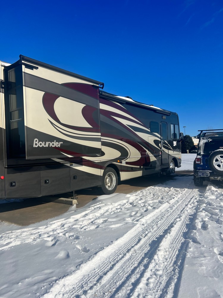 First of all, we live in our Motorhome Full-time because we are retired and enjoy traveling the country. However, we schedule a monthly trip back to the Memphis area for doctor’s visits and my husband Joe’s monthly Chemo maintenance treatments. This past Saturday, we opted to return to the Memphis area a little early for treatment before a pending winter storm. Meteorologists were predicting a possible total of eight inches of snowfall. When one lives in a low-slung motorhome with slower-than-average stopping capabilities, driving through the snow was something that we did not want to do.